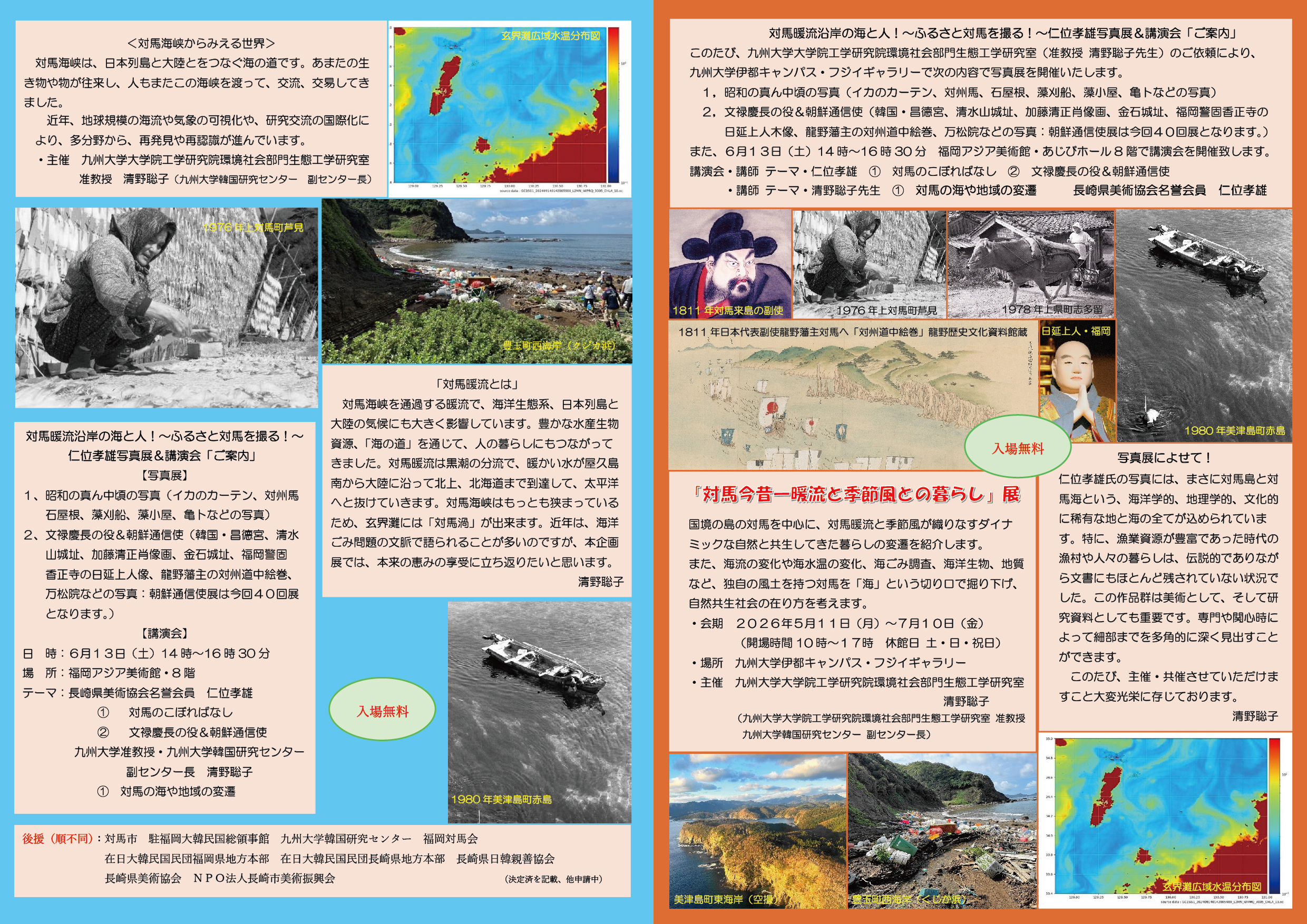 国境の島の対馬を中心に、対馬暖流と季節風が織りなすダイナミックな自然と共生してきた暮らしの変遷を写真資料を中心に辿ります。 特に漁業を中心とした生活文化に注視し、自然共生社会の在り方を考えます。
